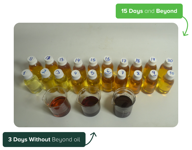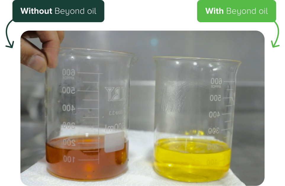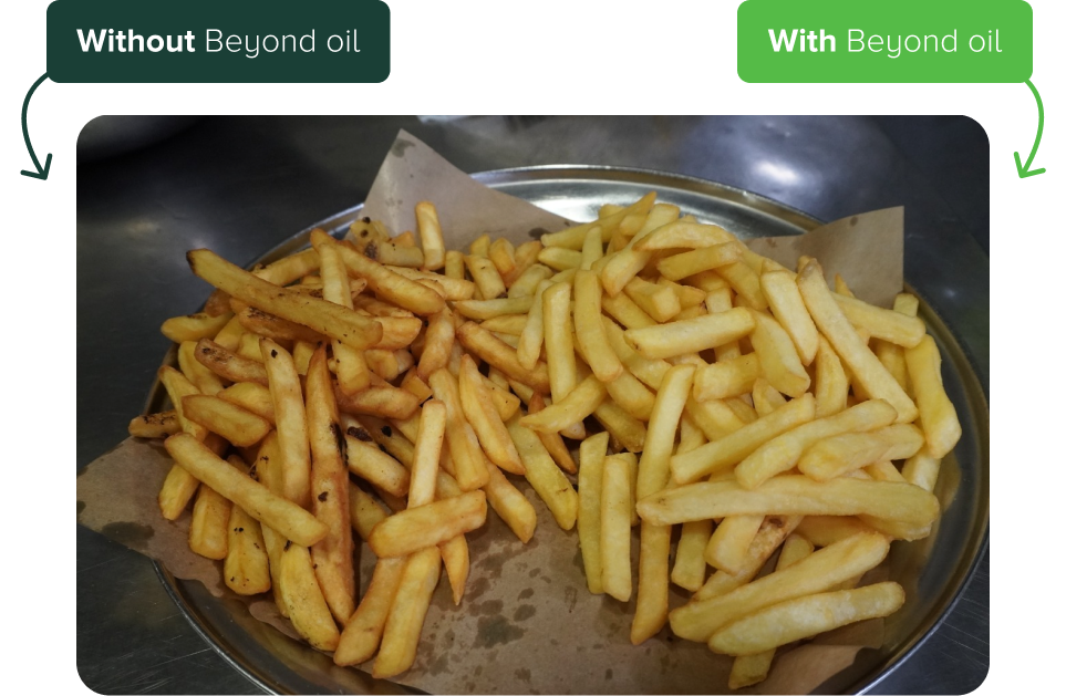 Daily use of Beyond Oil significantly increases oil life and reduces overall oil consumption by up to 70%. With our solutions, large food chains and food processing companies can reduce their carbon footprint dramatically.